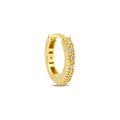 This thin hoop earring captures the essence of understated luxury. One side sparkles with a scattering of carefully placed diamonds, creating a soft shimmer that catches the light from every angle. The reverse side features a singular, prominent diamond.