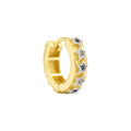 The Shiny Stars Reversible Hoop Earring is a versatile and elegant piece of jewelry. Crafted in 14k gold, this stunning hoop earring features stars with Cognac Diamond in the middle on one side and stars with Blue Sapphire in the middle on the other. This unique design allows for flexible styling options, making it perfect for any occasion. This earring can be mixed and matched with other pieces from our collection to create your unique style. Enhance your jewelry collection with the timeless beauty and modern charm of the Shiny Stars Reversible Hoop.